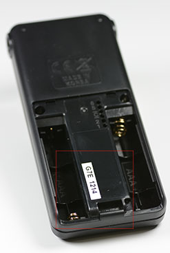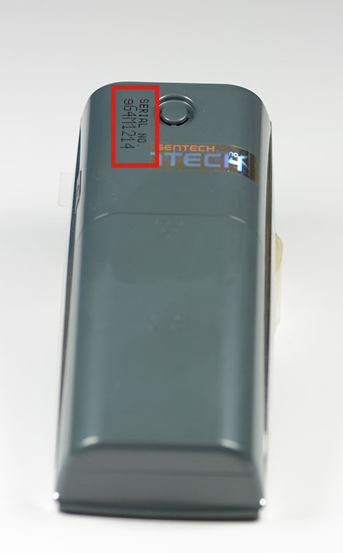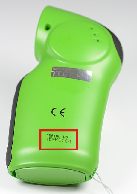 Sériové číslo najdete na několika místech: na Alkohol testeru, pod krytem baterie, pod baterií, ukázkové foto: