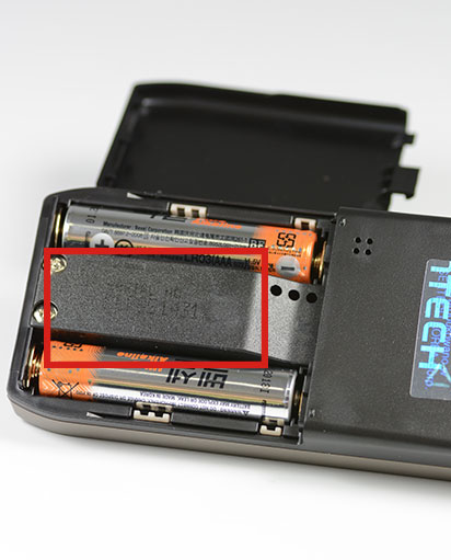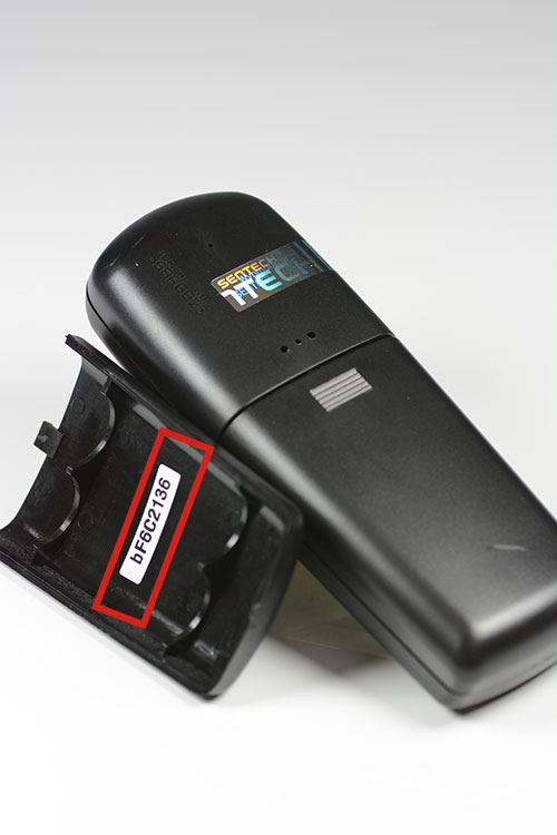 Sériové číslo najdete na několika místech: na Alkohol testeru, pod krytem baterie, pod baterií, ukázkové foto: